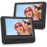 NAVISKAUTO 9" Car DVD Player Dual Screen, Headrest Video Player with 5 Hour Rechargeable Battery, Last Memory and USB/SD Card Slot (Host DVD Player+ Slave Monitor) - - - ❤️ 5-hour Playing Time: The 9 inch dual portable DVD players have a built-in rechargeable Li-ion battery, main monitor could support up to 5 hours working time solely or two monitors together for about 2.5-3hrs, car charger and AC power adapter included - ❤️ Car Headrest DVD Player: With Headrest straps, the two monitors can be easily mounted on car headrest and adjust in different sizes headrest , keep your kids entertained for road trips (To receive a FREE headrest mount, please check the promotion part) - ❤️ Supports USB/SD/MMC (up to 128GB FAT32): allows you to play all of your downloaded media on both screens - ❤️ Resume Play: The portable dual DVD players are enabled the last memory function, you could start the movie from where you left last time; With the remote control, you could pause or start even while driving - ❤️ Region Free and Support Multi-Format: Support last memory for DVD: DVD/SVCD/VCD/DVD-5/CD/CD-R/CD-RW/DVD-9/DVDR/DVDRW/CD+G; For Music: MP3/WMA; For Picture: JPG/JPEG; For video (up to 720 * 576): AVI/MPG/FLV/VOB/DAT/DIVX List Price:$129.99 Our Price:$129.99