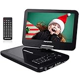 UEME 12.5 inches Portable DVD Player with 10.1 inches LCD Screen, Car Headrest Mount Holder, Remote Control, Car Charger Wall Charger, Mobile DVD Players with Built-in Rechargeable Battery (Black) - - - PORTABLE DVD PLAYER- 10.1 inches TFT LCD screen with HD 1024 x 600 resolution. Built-in high capacity rechargeable lithium battery. Built-in 2 x 1.5 W speakers to provide stereo sound. Anti-shock and light weight design make it easy to carry. Comes with a wall charger and a car charger. Suitable for home and travel use. It's a nice holiday gift - PLAYING FULL REGION DVD's and CD's- Compatible with DISC types include: DVD DVD-R DVD-RW CD CD-R HDCD Music-CD Audiobook-CD Mp3-CD Picture-CD VCD EVD SVCD; You can also play the supported multimedia files through the USB port and SD card slot (Max support 32G); Compatible audio files include MP3 WMA; Compatible video files include VOB, AVI MP4 which is encoded with DIVX, XVID or MPEG4 ( It doesn't support H.264 codec. The video's screen size should be 720x576 or less in either height or width) - EASY TO USE- Turn on the power switch and put in the DISC to enjoy your favorite videos. The DVD player is controlled by buttons or remote. A standard earphone jack is provided for using headphones. Both seniors and kids are easy to get started - POWER OFF RESUME FUNCTION- The DVD player will remember the point of playback before shutdown, it will pick up from where you left off last time; Enable the 'last memory' in setup menu to activate this feature; You needn't to play the disc from the beginning every time - COMES WITH A CAR HEADREST MOUNT HOLDER- The car headrest mount holder is a canvas case with 2 straps. It can be buckled to the car headrest easily; The screen of the DVD player can be rotated and flipped down. Place the folded DVD player in the case so that you can enjoy movies on-the-go. (Warm tips: To change DISC, you has to take out the DVD player from the case) List Price:$68.99 Our Price:$68.99